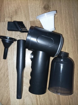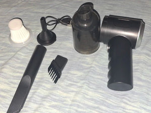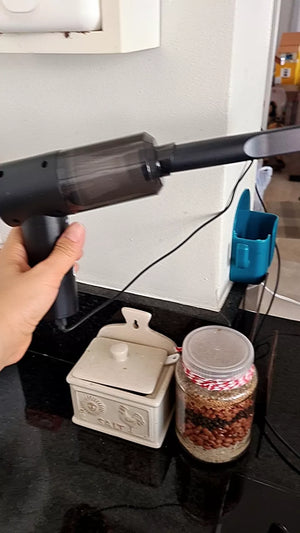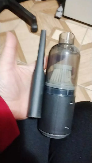 O aspirador é carregado via USB, permitindo fácil carregamento no carro ou em casa, garantindo que está sempre pronto para uso.