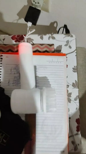 A escova é recarregada via USB, tornando-a prática e fácil de usar sem a necessidade de baterias.